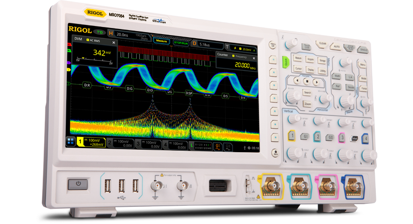 Осциллографы серии функционируют на основе сочетания высокотехничной платформы RIGOL UltraVision II и фирменного чипа ASIC®RIGOL, благодаря чему имеют продвинутые технические характеристики: большую длину записи, поддержку анализа протоколов для современных распространенных каналов связи, наличие оперативной памяти измерительного оборудования для многоциклового тестирования высокочастотных сигналов без ограничения эффектов осциллограмм видимых на экране, скорость захвата сигнала более 600 000 осц/с и др.