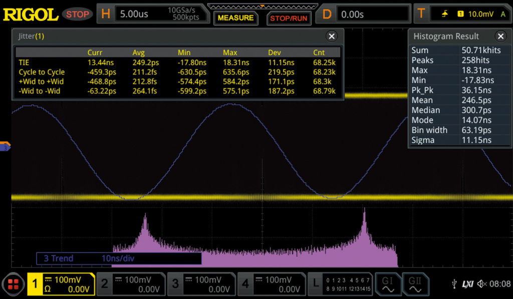 Позволяет одновременно измерять несколько непрерывных битов и составлять статистику, эффективно выполняя анализ джиттера для большого количества данных. Из графика тренда джиттера и гистограммы вы можете быстро получить представление о характере и источнике джиттера, что значительно повышает эффективность работы инженеров.